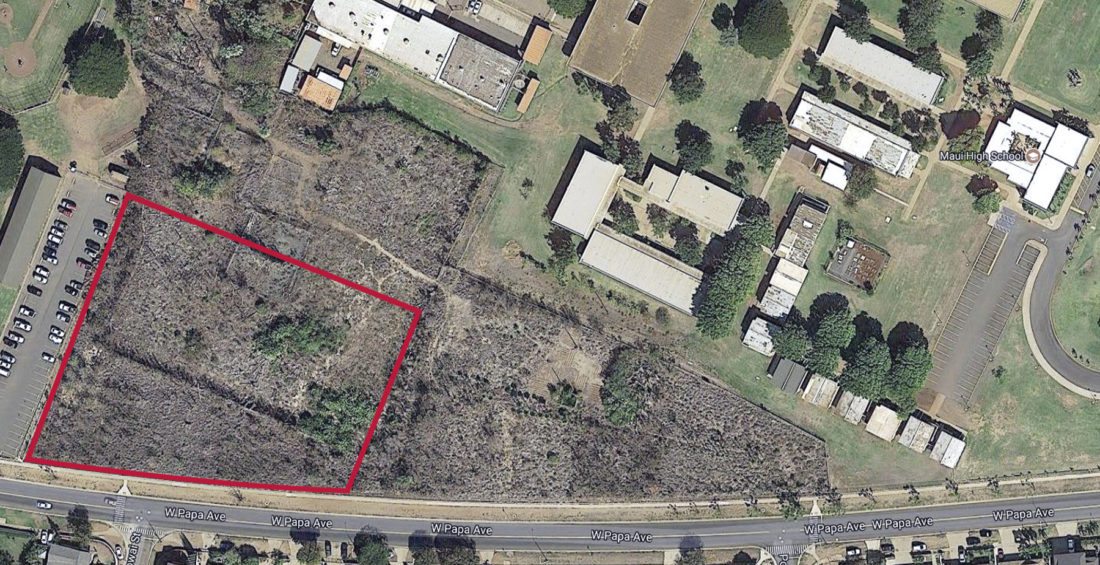 Medical, psychological and administrative services for Maui’s veterans will be consolidated at a single location (outlined in red) on the edge of Maui High School’s campus along West Papa Avenue. • Google Maps photo