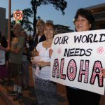 (First Photo:) Danette Kong of Kula (from right) and Deanna Summers of Kihei join about 50 people Sunday night in Wailuku for a vigil following violent clashes between white nationalists and counter protesters in Charlottesville, Va., on Saturday. Three deaths have been linked to the rally. Two local groups under the nonprofit Indivisible Project organized the vigil.