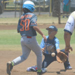 First Photo: Trevor Kurasaki pitches for the Shockers during their 2-1 win over KRU at the War Memorial Complex’s Lau Hee Field in Wailuku on Sunday in the Bronco (12-and-under) Division of the All Pono Memorial Day Tournament. The four-day event will conclude today, crowning champions in four divisions in games at Maehara Stadium and the War Memorial Complex.