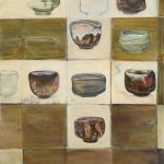 One cannot help but notice the multitude of tea bowls — both ceramic versions as well as depictions in several paintings. Yee smiles and says he just finds them interesting.