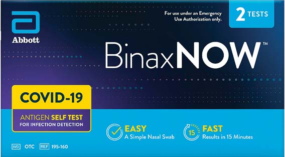 One kit will be provided for each vehicle driving through the distribution site. The BinaxNOW self-test kits provide ...