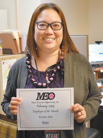 - Maui Economic Opportunity Human Resources Administrative Specialist Kristen Sato has been named the nonprofit’s Employee of the Month for February. Photo courtesy MEO
