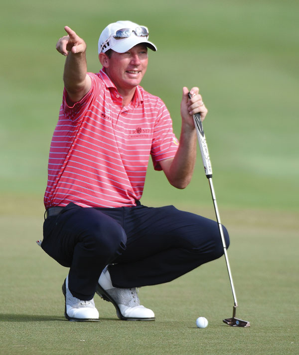 Jim Herman discusses the grain on the 17th green with his caddie Thursday. NewsletterToday's breaking news and more in your inboxEmail(Required) I'm interested in (please check all that apply)(Required) Daily Newsletter Breaking News Obituaries Are you a paying subscriber to the newspaper?(Required) Yes No