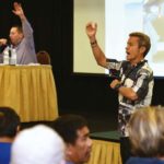 - Auctioneer Joe Teipel signals a bid for a piece of Hawaiian Commercial & Sugar Co. equipment during Thursday’s auction at the Maui Beach Hotel in Kahului. The Maui News / MATTHEW THAYER photo