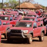 - A sea of red pickup trucks was part of the Puunene Mill inventory on the auction block this week. The Maui News / MATTHEW THAYER photo