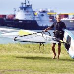Kuau’s Giampaolo Cammarota carries his windsurfing rig to shore after a session at Kahului Harbor on Thursday afternoon. Cammarota, who works in the rentals department at Hi-Tech Surf Sports, said the foil attached to the bottom of his board may be the next big thing in water sports. The foil provides support, stability and allows riders to stay longer on waves. Cammarota said that as the foils have become popular, especially with stand-up paddleboarders, they have become difficult to keep in stock at the Kahului store. Cammarota posts a Maui surf report at mauisurfreport.blogspot.com.