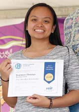 Domingo was enrolled in Maui High School’s Academy of Hospitality and Tourism (AOHT), and plans to pursue a degree in travel industry management at the University of Hawaii at Manoa starting in the fall. Domingo has been serving as the vice president of the AOHT, where she has been involved with many service projects and gained hospitality experience through career shadowing. As her senior project, she planned the Junior AOHT Orientation Meeting for incoming juniors and their parents.