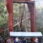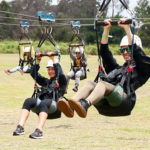 About 60 campers and 175 caregivers traveled to Piiholo Ranch Zipline on Wednesday as part of the 41st annual Camp Imua. Campers ages 6 to 16 got to zipline, mountain climb, pet animals and do other activities as part of the weeklong recreational camp for children with disabilities and special needs. The camp kicked off Sunday and ends Friday. For more information, visit imuafamilyservices.org/camp-imua or contact 244-7467 or campimua@imuafamilyservices.org. Camper Ethan Grant, 10, (first photo) holds on to some rope Wednesday afternoon as he climbs up the 50-foot high Tango Tower. Caregivers Gita Tucker (second photo, from right), Morena Kordei and Kendra Bean race down a zipline alongside camper Idalia Sato, 10.