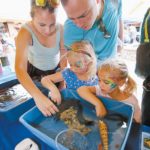 Five-year-old Alana Anderson (far right) and 6-year-old Stella Anderson of Kihei check out the “Critter Station” with dad Ted Anderson and aunt Cheyenne Anderson of Waiehu at the Maui Ocean Center’s booth Sunday. The Maalaea Harbor Party held at the Maui Harbor Shops featured marine education, arts and crafts, food trucks, live music and local vendors.