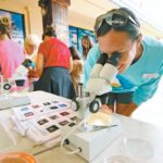Third photo: Robyn Ehrlich, education manager with the Pacific Whale Foundation, examines a sample of plankton scooped from Baby Beach earlier Sunday. “A lot of the things we see snorkeling start out their life as plankton,” Ehrlich said. Whales eat krill, which feed on plankton, though there isn’t enough in Hawaii to support a krill population, she explained.