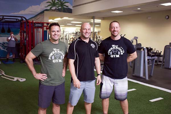 Peter Shenkin (from left), Logan Peitscher and Sam Dahlkvist are the new owners of Maui Powerhouse Gym in the Azeka Shopping Center in Kihei. The new owners are planning facility improvements and more fitness classes. The change of ownership became official Jan. 22.