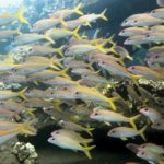 Beginning in June or July, large schools of ‘oama migrate to inshore habitats that offer protection from predators and rough water conditions. They congregate in shallow, sandy beaches near reef shelves or in harbors under piers and boat slips. ‘Oama schools will stay around for weeks at a time, usually until September, at which point they return to deeper waters as weke.