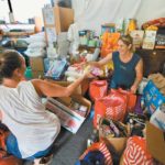 - Lahaina residents and volunteers Samantha Der (left) and Laura Masslon help sort donations at Waiola Church in Lahaina on Sunday morning. The Maui News COLLEEN UECHI photo