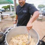 - Roy’s executive chef Jessie Anacleto prepares chicken adobo for displaced families Sunday. The Maui News / COLLEEN UECHI photo
