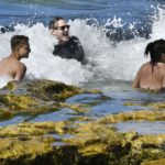 - A wave washes over a Hookipa Beach Park tide pool as Connor Eisele, 13, Mark Bridgeford and Joanna Eisele hold on Wednesday afternoon. The Eiseles are visiting from Orlando, Fla., while Bridgeford lives in Paia. Maui County and the Maui Visitors Bureau have started a 10-year tourism plan that addresses issues such as visitor safety, illegal vacation rentals, the community, environment and Native Hawaiian culture. • The Maui News / MATTHEW THAYER photo