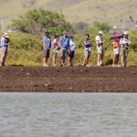 Kealia Pond National Wildlife Refuge biological science technician Suzanne Conlon (second from right, first photo) leads a tour of the wetlands Tuesday morning for guests from as far away as Zurich, Switzerland. Along with pointing out native and non-native birds, Conlon explained the impacts of invasive animal species like pigs, cats, rats and mongoose, as well as non-native plants like pickleweed. Another challenge Kealia nesting birds face, she said, is rising water levels due to increased stream flow. Now that shuttered Hawaiian Commercial & Sugar Co. no longer diverts water for agricultural use, the wet-dry cycle the refuge experienced when it was established in 1992 has been replaced by consistent water levels, punctuated by flooding that can inundate nesting areas. The free walking tours of the refuge are scheduled for 9 a.m. Tuesdays through March.