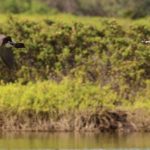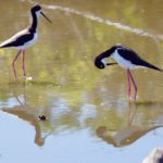 Second photo: Hawaiian stilts, or a’eo, ply Kealia Pond’s nearshore waters Tuesday.