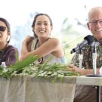 UH Maui College Hawaiian Studies Professor Ki’ope Raymond (from right, second photo) joins graduate students Kanoe Pacheco and Sesame Shim in discussing the importance of preserving and promoting the Hawaiian language during an ‘Olelo Hawai’i Panel.