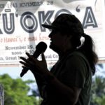 First photo: University of Hawaii Maui College Hawaiian studies instructor Kahele Dukelow points out the important role indigenous language plays in Hawaiian identity as part of Thursday’s 175th anniversary celebration of La Ku’oko’a, “Hawaiian Independence Day,” on the Kahului campus. The event marked the anniversary of the day in 1843 when Hawaiian ambassador Timoteo Ha’alilio entered into a series of treaties with European nations recognizing Hawaii under King Kamehameha III as an independent nation. Ha’alilio died on his way back to the islands, but his accomplishment became a major holiday in the kingdom and was celebrated for five decades. Hawaiian and non-Hawaiian citizens of the kingdom would celebrate with visits to Iolani Palace, feasts, speeches, mele and horse and velocipede races. After the overthrow in 1893, the celebrations disappeared.