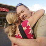 - Amanda Eller’s father, John, hugs family spokeswoman Sarah Haynes outside the Maui Memorial Medical Center, where his daughter was receiving treatment on Friday afternoon. Amanda Eller was found after a 16-day ordeal in the woods. — The Maui News / MATTHEW THAYER photo