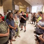 - Residents wanting to testify before the Maui County Council’s Affordable Housing Committee wait outside Council Chambers on Wednesday afternoon. Council staff had to clear the chambers after a shouting match broke out during testimony on a pair of controversial workforce housing projects.
