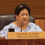 - Committee Chairwoman Tasha Kama reads from a code of conduct after an outburst in Council Chambers on Wednesday.