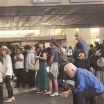 - Passengers jam the open air lobby at Terminal 2 at Daniel K. Inouye International Airport in Honolulu on Tuesday. Flights were being delayed and hundreds of people were waiting to go through security screening at Honolulu’s airport after an active shooter scare. Leslie Ryan photo via AP