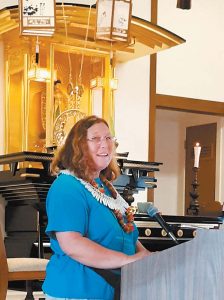 - Helen Jaccard speaks to an audience of 40 people about the purpose of the Veterans for Peace project, which is to stay active and aware of the threats of nuclear weapons. She gave her account Tuesday as part of the Hiroshima/Nagasaki Remembrance at Kahului Hongwanji Mission.