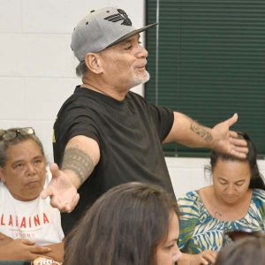 “We want to do it right, and we’ve been working to do it right, so that’s why I want clarity, I want direction,” he said Tuesday night during a meeting at the Kaunoa Senior Center in Lahaina. “I want the highest court in the land to say ‘this is the way we do it’ and that way we won’t have no question in where we spend our money and how we get it done and to credit you, the people of Maui County.”
