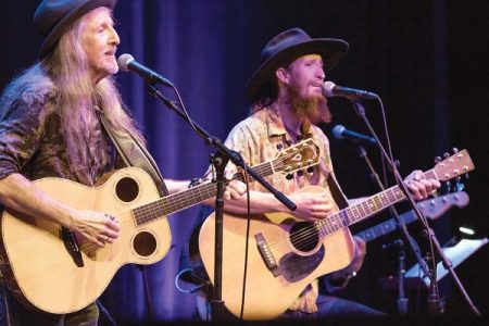 Long-time Maui resident Pat Simmons (left) can occasionally be seen playing music with his son, Pat Simmons Jr. Besides the Doobies, Simmons has been working with his son on a new record. “I’ve recorded a song with him, ‘I Want to Make My Own Decisions,’ and we’ll probably do a video,” said Simmons. “We cut the track here with Chris Thomas and Hutch (Bonnie Raitt bassist James Hutchinson). I laid down my guitar and Dave Mason played on the track . . .”