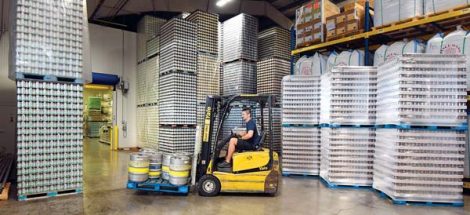 - Maui Brewing Co. warehouse technician Jordan Ehresman is surrounded by tall stacks of beer cans, some empty and some full, as he moves a pallet of beer kegs Tuesday afternoon at the Kihei facility.