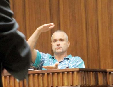 David Sheffield testifies in his kidnapping trial in 2nd Circuit Court in 2016. He was convicted and sentenced to 20 years in prison. The Hawaii Supreme Court overturned his conviction and remanded the case back to 2nd Circuit Court. -- The Maui News / LILA FUJIMOTO photo