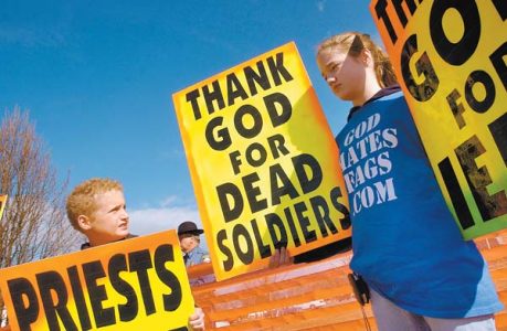 - Westboro Baptist Church members Gabriel Phelps-Roper, 10, and his sister Grace Phelps-Roper, 13, both of Topeka, Kan., protest at the funeral of Marine Lance Cpl. Matthew A. Snyder in Westminster, Md., on March 10, 2006. The church, labeled as a hate group by some national organizations, says that it plans to picket in front of Maui High School on Friday to protest a transgender athlete playing on a girls volleyball team. AP file photo