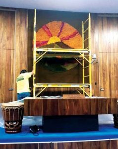 - A tapestry of the Maui County seal, created by the late Alice Kagawa Parrot, was removed in August from the Council Chambers under the direction of then council Chairwoman Kelly King. The council, under the new council Chairwoman Alice Lee, voted to return the cleaned tapestry to the chamber. — Photo courtesy of Council Member Riki Hokama’s office
