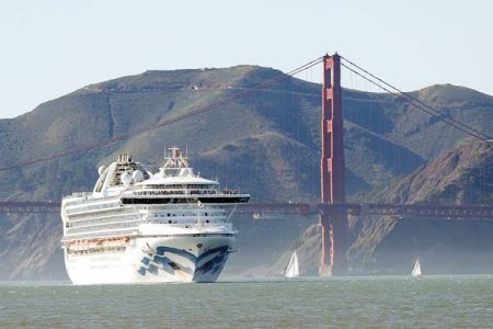 - The Grand Princess cruise ship passes the Golden Gate Bridge on Feb. 11 as it arrives from Hawaii to San Francisco. California’s first coronavirus fatality is an elderly patient who apparently contracted the illness on a cruise, authorities said Wednesday. San Francisco Chronicle / Scott Strazzante photo via AP