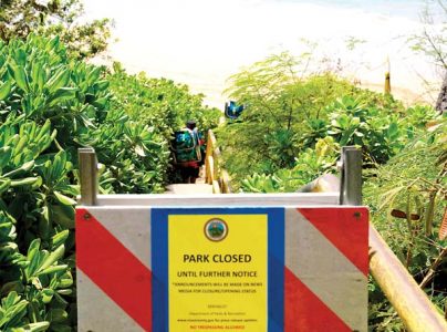 He showed a recent video of a county park officer on the cliffside near Hookipa Beach Park handing out flyers to beachgoers. Coralle said the officer told people that the “ocean is closed.”