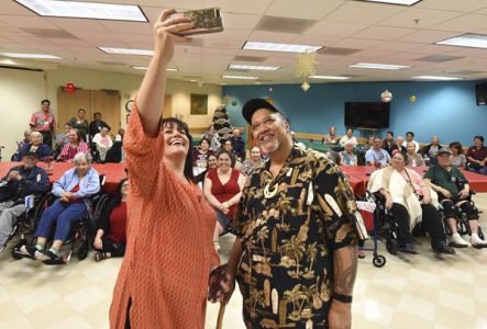 - Amy Hanaiali‘i and Willie K snap a selfie with residents and staff at Hale Makua Kahului after performing on Dec. 13, 2018, as part of the Maui Arts & Cultural Center’s Artist in the Community program. The Maui News / MATTHEW THAYER photo