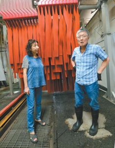 - James Hashi and wife Takane Hashi pose in the car wash at Hashi Auto Supply & Service Co. in Wailuku on Wednesday. The couple closed up their longtime business Monday and plan to retire. — The Maui News / MATTHEW THAYER photo