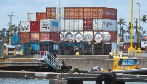 - Stacks of containers are seen at Kahului Harbor on Tuesday