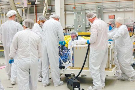 Members of SCORPIO-V, a division of HNu Photonics based in Kahului, work on the Mobile SpaceLab-2, which is scheduled to launch in early 2021 on the SpX-22, a future resupply mission to the International Space Station. Photo courtesy of Dan O’Connell, Hnu Photonics