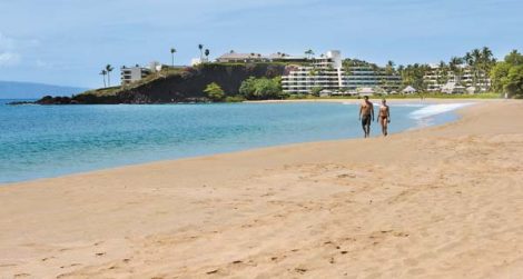 - A couple walks across a deserted Kaanapali Resort beach in April. Visitor industry officials are mulling the creation of “resort bubbles” that will keep trans-Pacific visitors to specific areas they cannot leave. The Maui News / MATTHEW THAYER photo