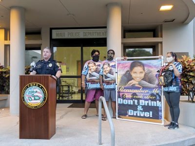 “We are honored to join the Maui Police Department in remembering Hannah,” her father, Everett Brown, said in a public service announcement last week. “You can help remember her as well by not driving impaired. If you plan on celebrating this holiday season, please plan ahead.