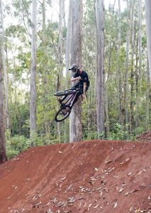 - Makawao resident Cole Christie, 22, catches air off the Akamai Track in the Kahakapao Recreational Area of Makawao Forest Reserve on Tuesday. Kahakapao mountain bikers said a recent state announcement on “illegal trails” built by area mountain bikers cast the riders in a poor light and they want to spotlight the positive work they have been doing. The Maui News / KEHAULANI CERIZO photos