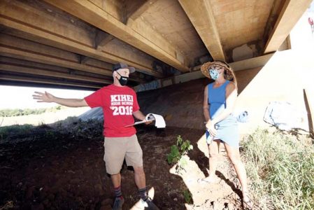Using an 8-foot-long board, Beerer plumbed the clearance under the northern, Kahului-side of the bridge where he envisions a simple concrete pathway. He says the path would allow students from Kihei high school and Kihei Charter School, as well as walkers, workers and patrons of the tech park, to safely cross under the highway.