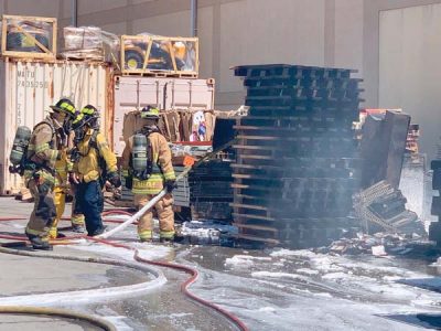 Firefighters extinguish pallets that burned outside Home Depot in Kahului on Friday afternoon. Kahului engine, tanker and hazmat companies responded to the 1:07 p.m. call and quickly extinguished the three stacks of pallets that were burning in an outside bay area on the south side of the store, according to the Maui Fire Department. The cause of the fire was under investigation.