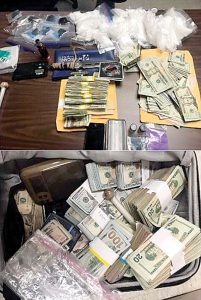 Police reported recovering 1,946 grams of crystal methamphetamine, 119 grams of heroin, two vials of anabolic steroids, a dagger, $17,045 in cash and paraphernalia associated with the use and distribution of narcotics.