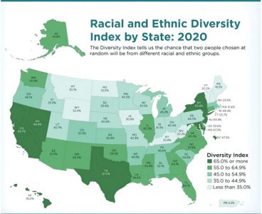 As a state, Hawaii ranked No. 1 in the country with the most diverse population, census data showed. The state’s diversity index leads the rest of the nation at 76 percent, meaning that the chance that two people chosen at random will be from different racial or ethnic groups is very likely. California (69.7 percent) and Nevada (68.8 percent) followed as the second and third most diverse states. Maine had the lowest diversity index at 18.5 percent.
