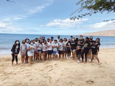 Maui Economic Opportunity Youth Services summer program participants and staff, Big Brothers Big Sisters of Maui “bigs” and “littles” and Monkeypod Kitchen by Merriman staff joined in the E malama I ko kakou moana “Save Our Ocean” beach cleanup at Kihei’s Sugar Beach on July 29.