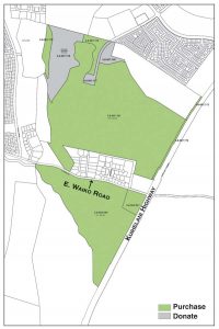 A council committee recently recommended approval for the acquisition of culturally sensitive Alexander and Baldwin land in Waiale to preserve for open space. The proposal includes acquiring for $10.5 million about 493 acres (in gray) for cultural preservation, along with agreeing to receive a roughly 50-acre donation for cultural preservation (in green). Rendering courtesy Keani Rawlins-Fernandez