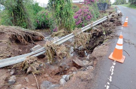 - A guardrail along lower Kekaulike Avenue remains washed out Tuesday afternoon. Both lanes of Kekaulike Avenue between Mile Marker 8 and Alae Road were closed Tuesday as state Department of Transportation crews worked to remove remaining debris. The weekend storm hit Upcountry hard, knocking out power and water for many residents on Monday and Tuesday. The Maui News / MATTHEW THAYER photo